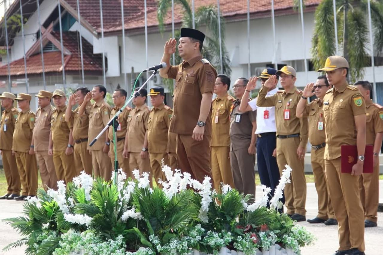 Apel dipimpin langsung oleh Bupati Barsel, Eddy Raya Samsuri, yang bertindak sebagai Inspektur Upacara.