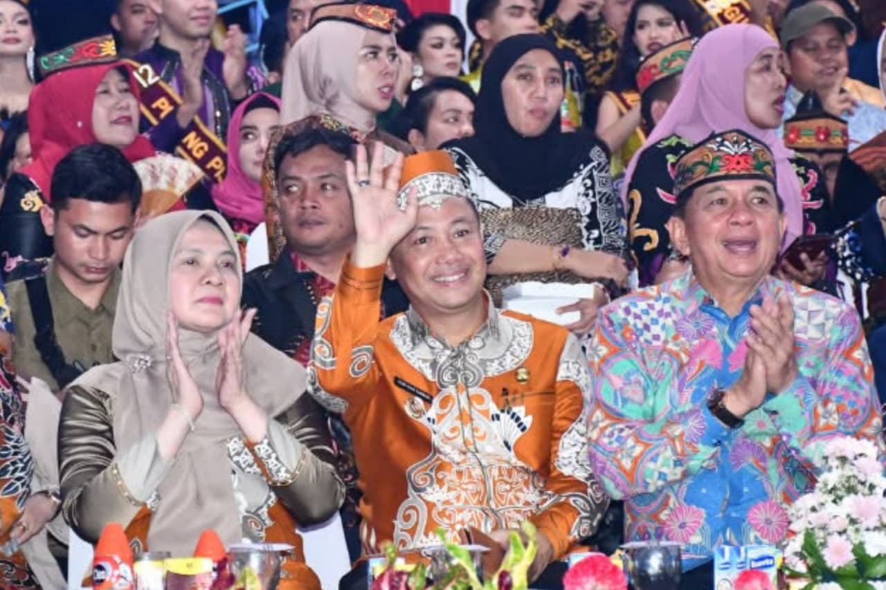 Bupati Barito Selatan (Barsel) Eddy Raya Samsuri bersama Ketua TP PKK Barsel Permana Sari hadir dalam pembukaan Festival Budaya Isen Mulang (FBIM) 2025 yang digelar di Stadion Tuah Pahoe, Palangka Raya, Sabtu (17/5/2025).