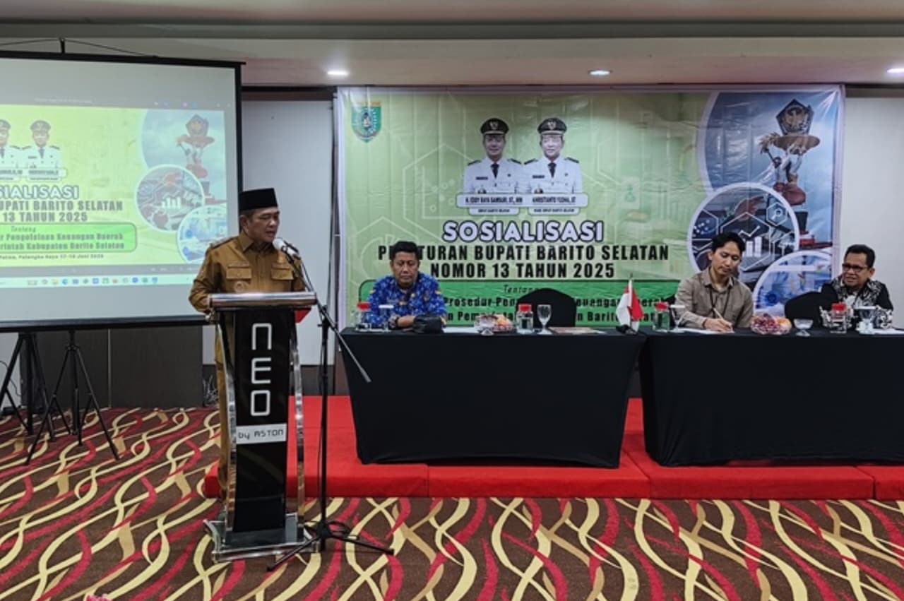 Pemerintah Kabupaten (Pemkab) Barito Selatan (Barsel) menggelar Sosialisasi Peraturan Bupati Barito Selatan Nomor 13 Tahun 2025 tentang Sistem dan Prosedur Pengelolaan Keuangan Daerah, yang diikuti para bendahara di lingkup Pemkab Barsel.