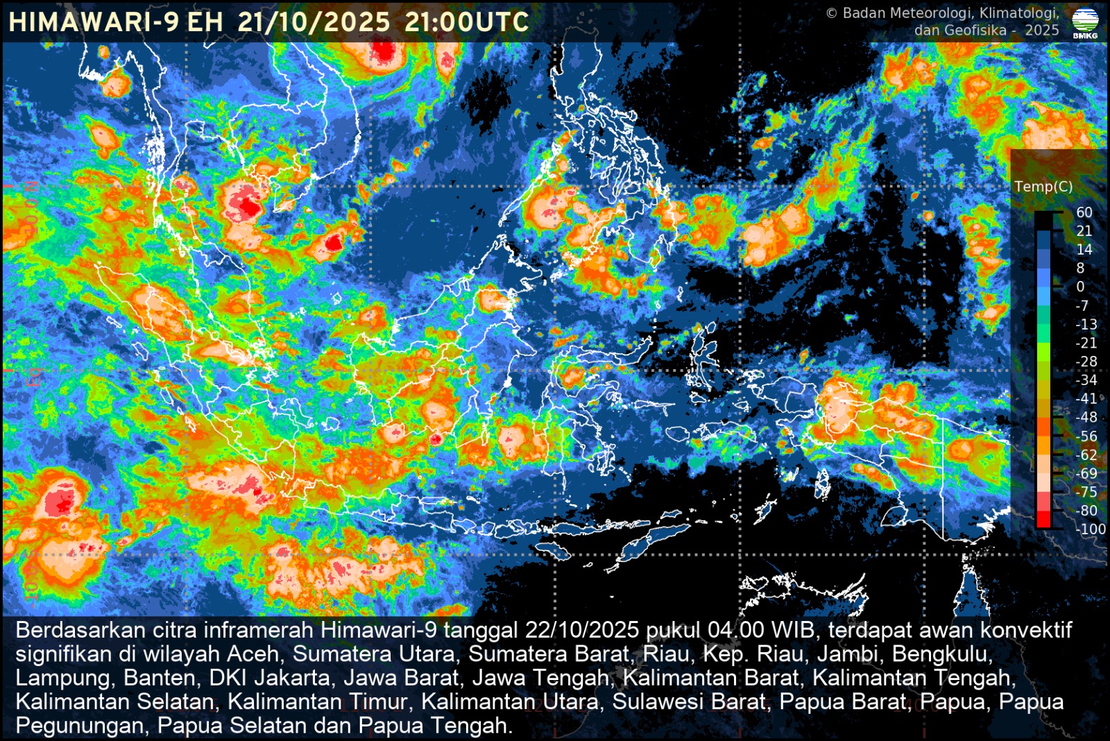 PALANGKA RAYA-Badan Meteorologi, Klimatologi, dan Geofisika (BMKG) Kalimantan Tengah mengeluarkan update peringatan dini cuaca pada Selasa (22/10/2025) pukul 04.40 WIB. Berdasarkan hasil analisis cuaca terkini, wilayah Kalimantan Tengah masih berpotensi mengalami hujan dengan intensitas sedang hingga lebat yang dapat disertai kilat atau petir serta angin kencang.