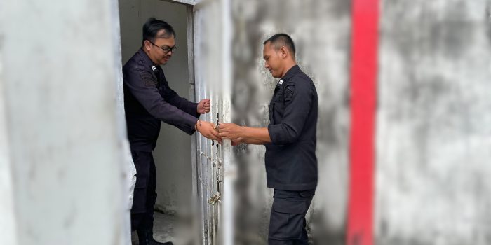 Sampit – Pergantian shift petugas jaga di Lembaga Pemasyarakatan Kelas IIB Sampit, Kanwil Kemenkumham Kalteng, ...