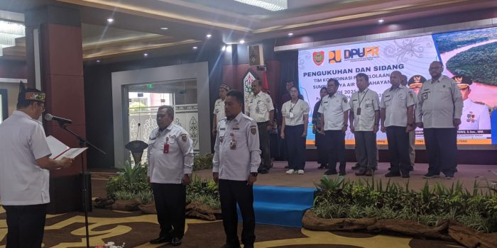 Pelaksana Tugas Sekretaris Daerah Provinsi Kalimantan Tengah, Ir. Leonard S. Ampung, saat mengukuhkan Tim Koordinasi ...