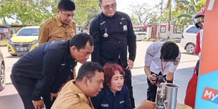 Tim Gabungan ketika melakukan pengcekan takaran disalah satu nosel SPBU di Kota Palangka Raya PALANGKA ...